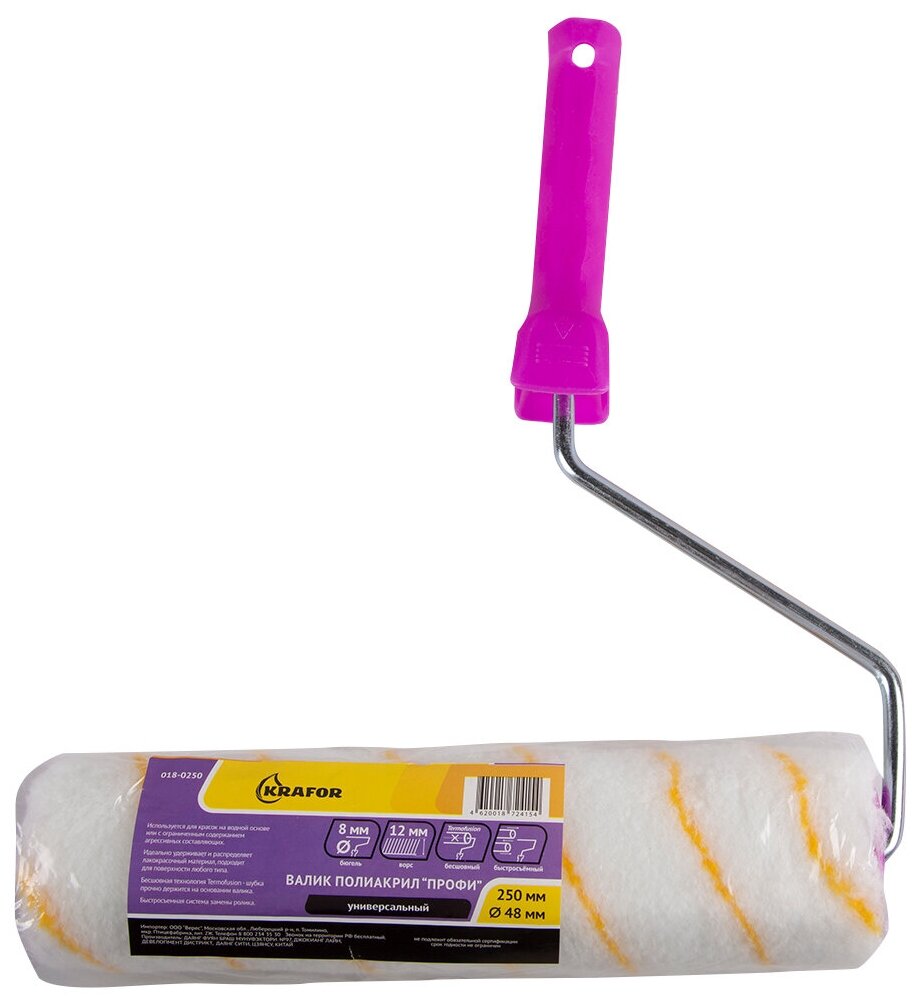 ВАЛИК ПОЛИАКРИЛ ПРОФИ D48/250 ММ (ВОРС 12 ММ) БЮГЕЛЬ 8 ММ (В СБОРЕ) (1/36) "KRAFOR" 018-0250
