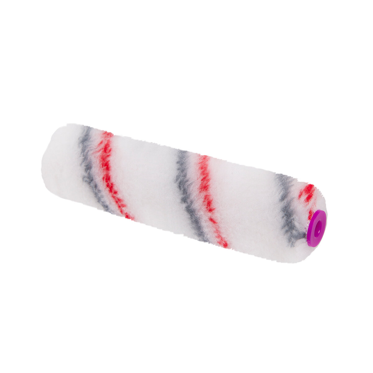 Запасной валик выполнен из полиакрила и имеет высоту ворса 12 мм. Ширина ролика 160 мм, диаметр 16 мм. При окрашивании ворс из шубки не выпадает, лакокрасочный материал ложится на поверхность без дефектов.