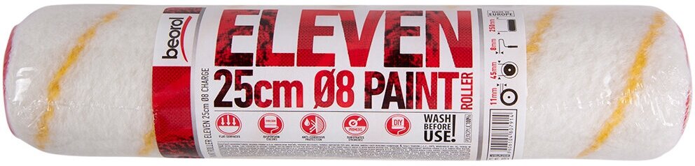 Малярный валик Eleven изготовлен из полиакрилового волокна. Имеет термоплавленный ворс длиной 11 мм. Бюгель в комплектацию не входит.