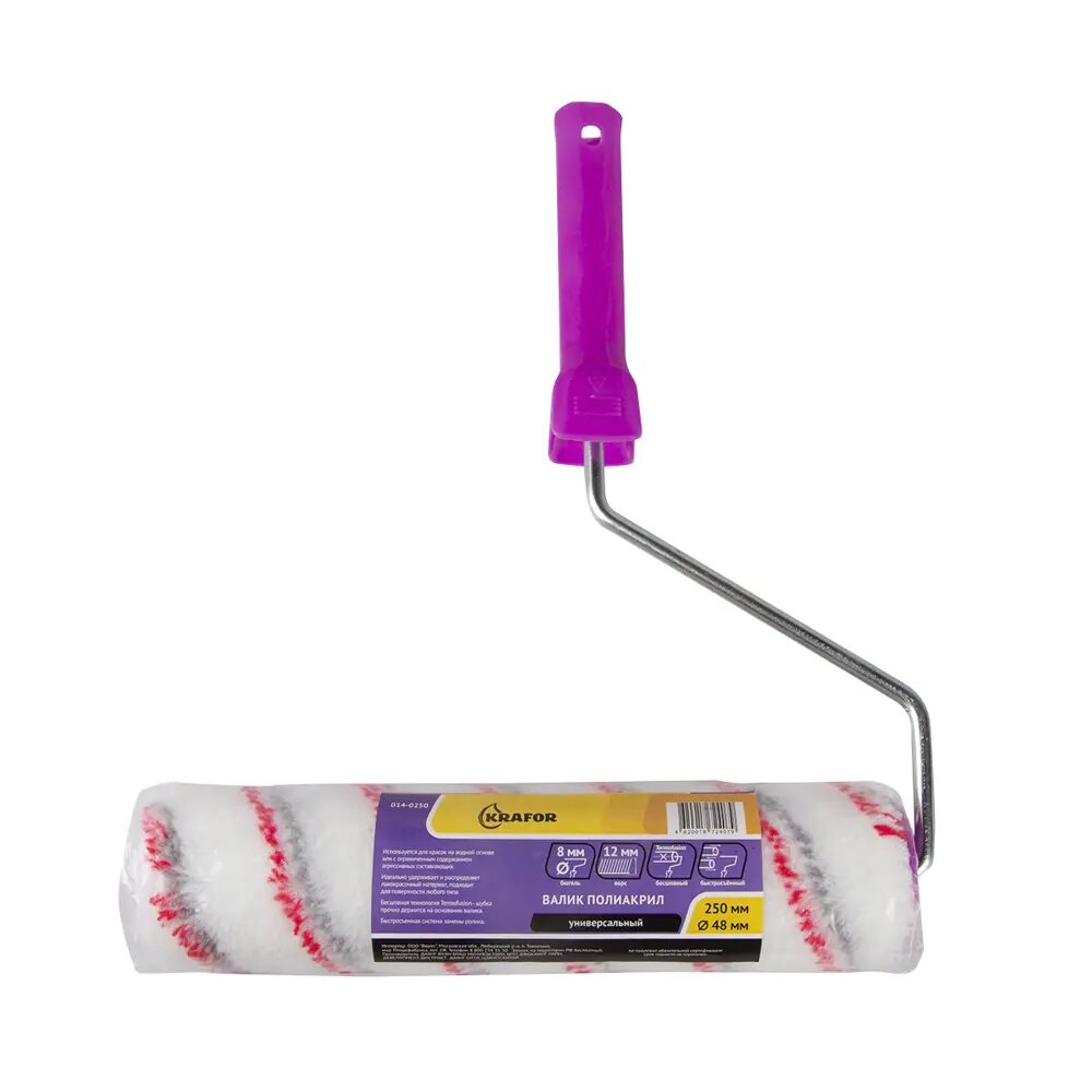 ВАЛИК ПОЛИАМИД ПРОФИ D48/250 ММ (ВОРС 12 ММ) БЮГЕЛЬ 8 ММ (В СБОРЕ) (1/36) "KRAFOR" 014-0250