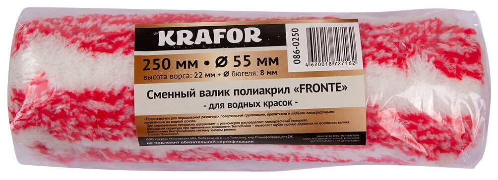 ВАЛИК ЗАПАСНОЙ ПОЛИАКРИЛ "FRONTE" D55/250 ММ (ВОРС 22 ММ) БЮГЕЛЬ 8 ММ (1/50) "KRAFOR" 086-0250