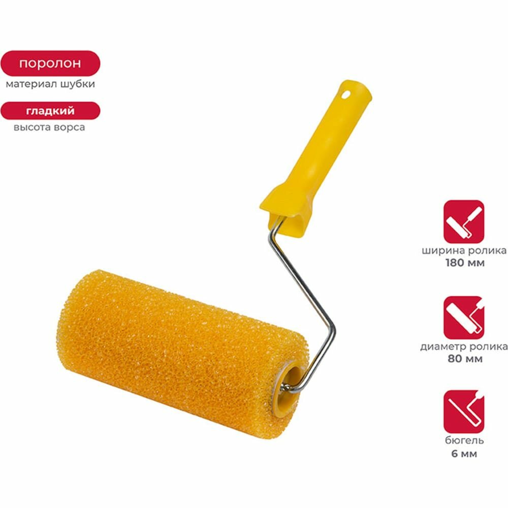 ВАЛИК СТРУКТУРНЫЙ ПОРОЛОН. "ГЛАДКИЙ" D80/180 ММ БЮГЕЛЬ 6 ММ (В СБОРЕ) (1/50) "KRAFOR" 085-0180