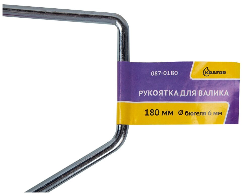 Изделие представляет собой оснастку для рабочей части малярного валика. Пластиковая рукоятка с отверстием под телескопический стержень. Материал бюгеля - сталь. Рукоятка удобно ложится в руке и не выскальзывает при окрашивании, что обеспечивает комфорт при использовании инструмента. Каркас обеспечивает надежное крепление сменных валиков. Инструмент легко очищается водой.