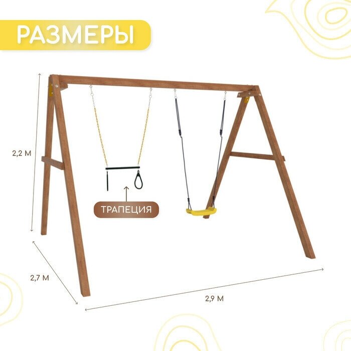 Особенностью данного товара является высокое качество материалов и прочность крепления всех элементов. Все карабины и кронштейны в комплекте помогают создать надежную конструкцию. Благодаря этому, качели Можга отличаются высокой безопасностью для малышей с разным весом.