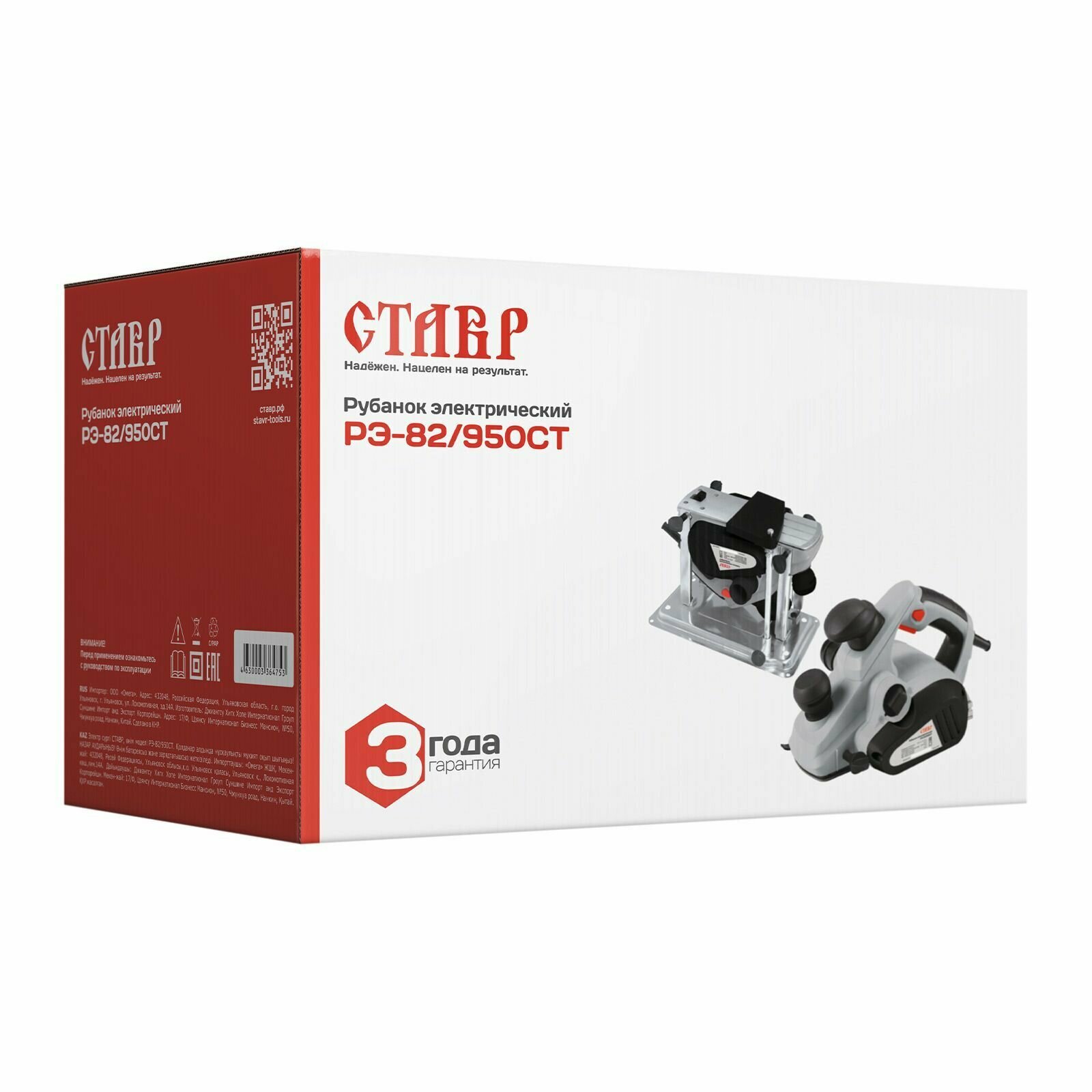 Электрорубанок Ставр РЭ-82/950СТ имеет 950-ваттный двигатель, развивающий скорость до 15000 об/мин. Он рассчитан на обработку заготовок из древесины шириной до 82 мм и глубину строгания до 3 мм. Благодаря возможности жёсткой стационарной установки с точной настройкой параметров обработки обеспечивается высокое качество выполняемой работы. Специальные пазы на подошве позволяют снимать фаски под углом 45 градусов. Улучшенная система удаления стружки гарантирует удобство и безопасность пользователя.