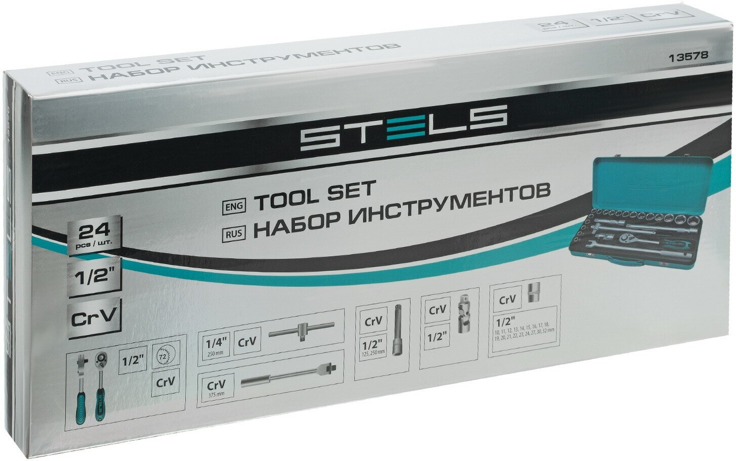 Наборы инструмента торговой марки STELS разработаны специально для автолюбителей и центров технического обслуживания. Каждый этап производства контролируется в соответствии с международными стандартами. Головки и комбинированные ключи изготовлены из хромованадиевой стали, придающей инструменту исключительную твердость в сочетании с легкостью. Биты, биты-вставки и отвертки производятся из стали S2, улучшающей свойства инструмента. Набор комплектуется трещотками с реверсом и быстрым сбросом, трещоточный механизм имеет 72 зуба и обеспечивает исключительную мягкость и плавность в работе.