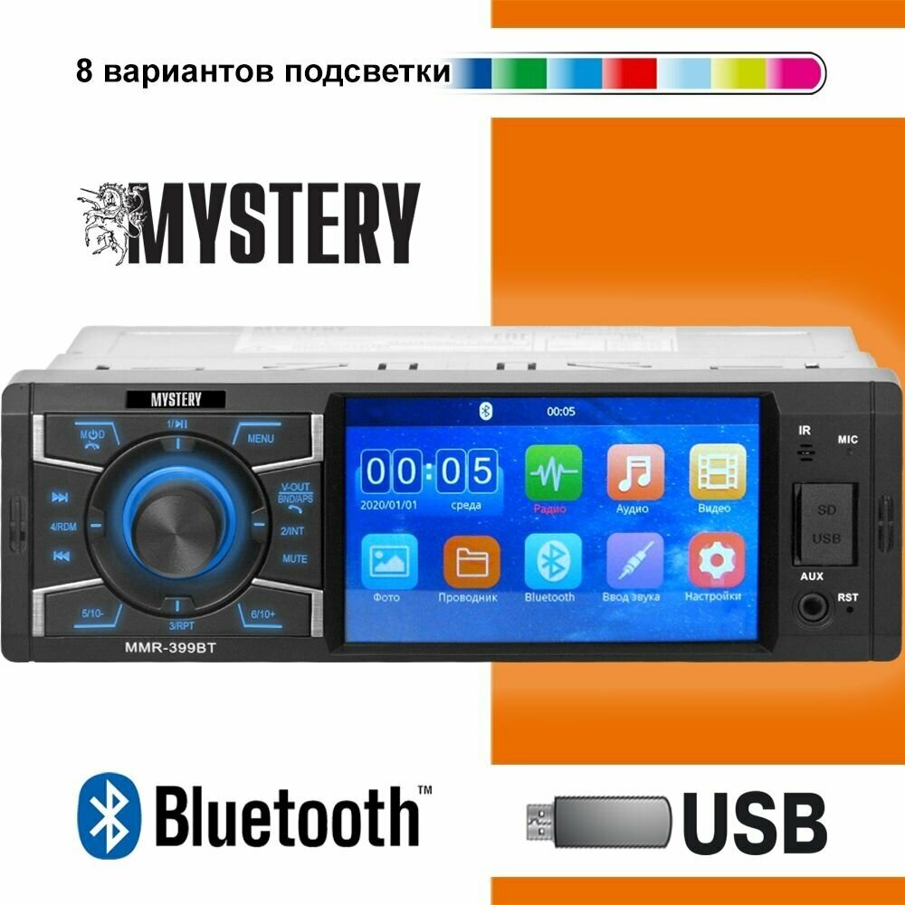 Автомагнитола MYSTERY — универсальная модель, совместимая со всеми современными автомобилями. Подходит для воспроизведения музыки с дисков CD/MP3/WMA, флешек и мобильных устройств через Bluetooth.