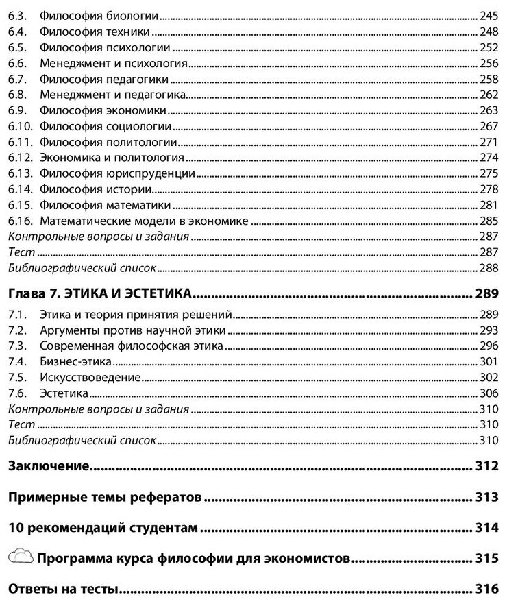 Учебник представляет собой последовательный курс философии. Излагаются вопросы философии науки и истории философии, онтологии, эпистемологии, этики и эстетики. Курс построен с учетом достижений аналитической философии, феноменологии, герменевтики, поструктурализма и других основных философских направлений современности. Используется теория концептуальной трансдукции. Особое внимание уделяется связи философии с экономикой и менеджментом. Курс тщательно выверен в дидактическом отношении. Каждый параграф заканчивается выводами, вопросами и заданиями, тестом, библиографическим списком.
