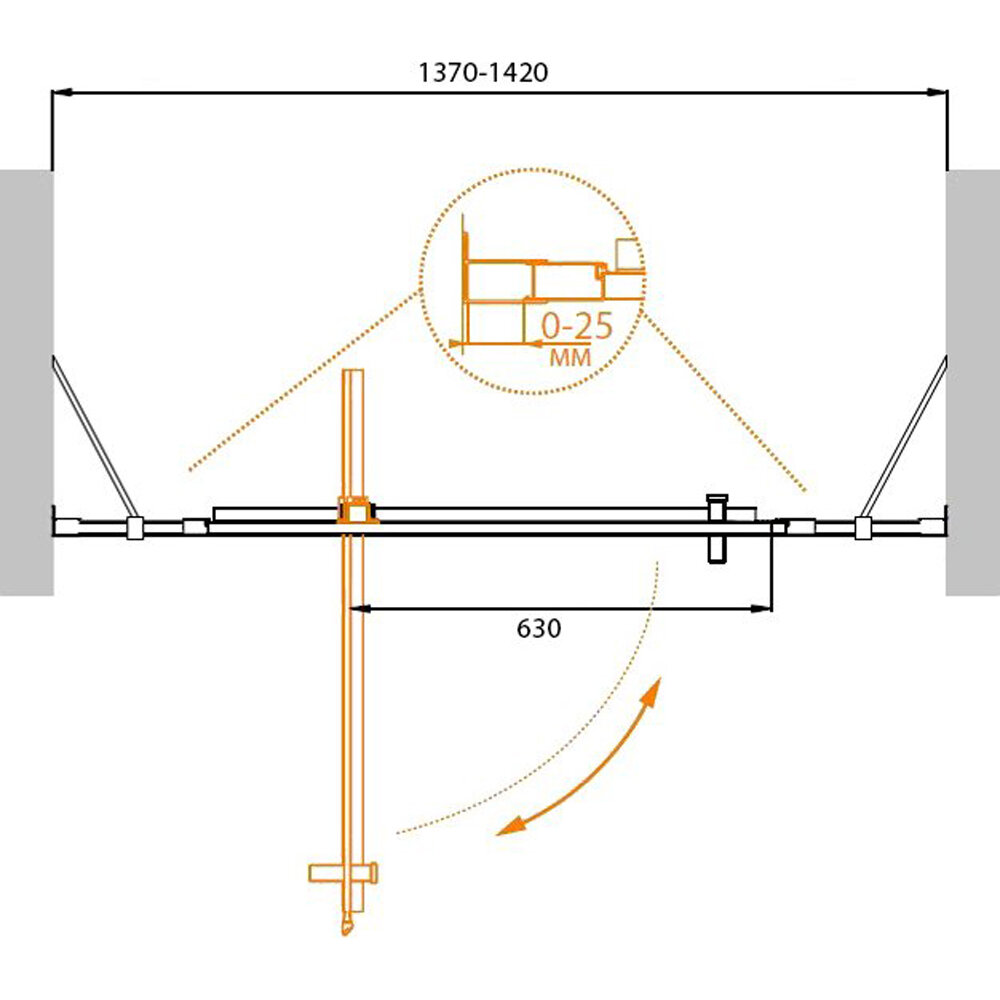 Монтаж: в нишу. Возможная установка: на поддон, на пол. Ориентация: универсальная. Материал полотна двери: закаленное стекло, стандарт EN12150 1:2000. Материал профиля: анодированный алюминий, стандарт DIN17611 2007. Регулировка ширины: предусмотрена за счет боковых профилей. Поддон приобретается отдельно. Модельный ряд с антикальциевой обработкой (IDROREPELLENTE VETRO IV). Ресурс эксплуатации: 15 лет