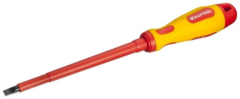 Профессиональная диэлектрическая отвертка для проведения слесарно-монтажных работ. Стержень изготовлен их хромомолибденовой стали на высокоточном оборудовании.