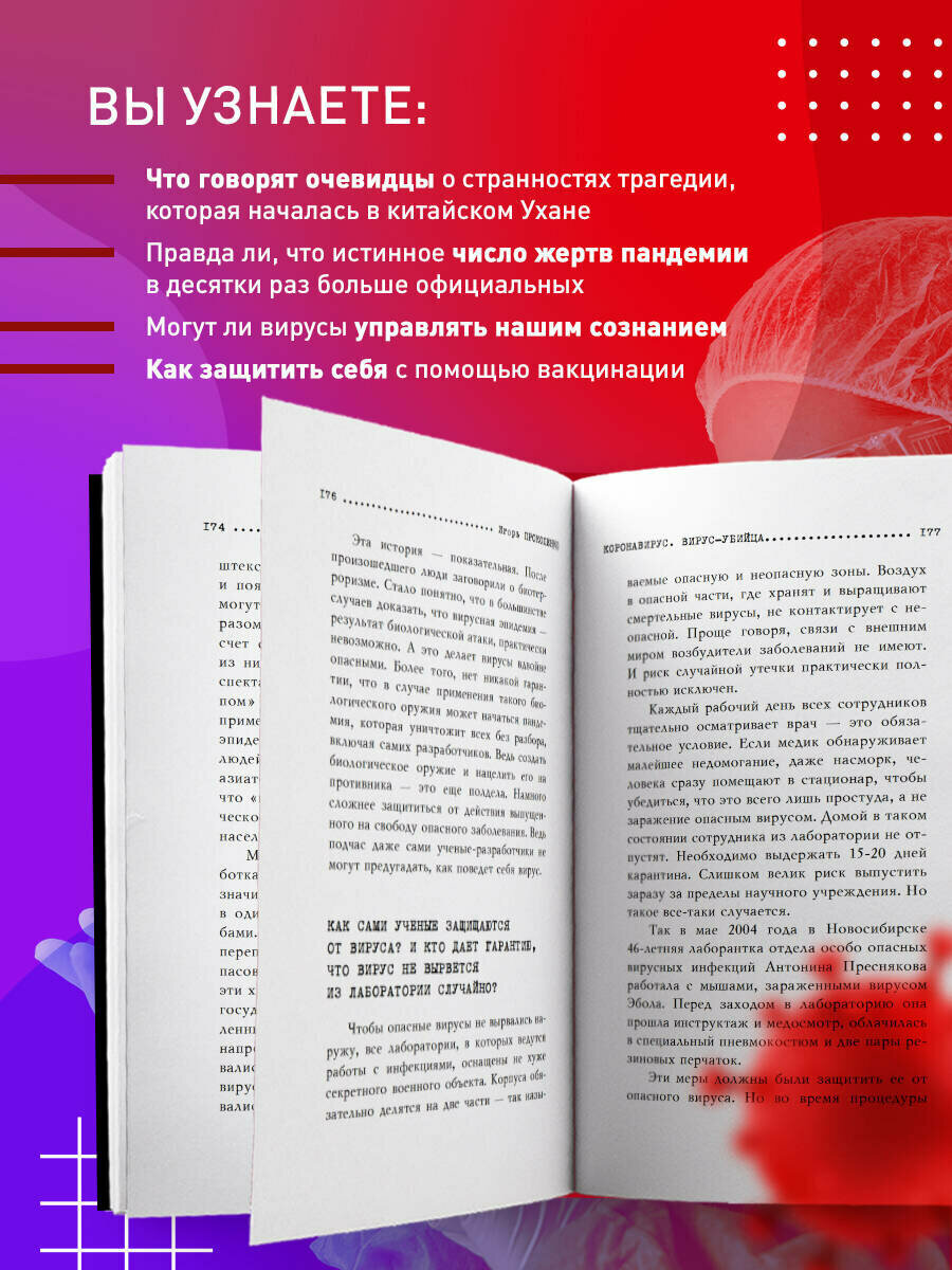 Журналистское расследование документалиста и телеведущего Игоря Прокопенко, которое было проведено непосредственно в Китае, а также в Москве и Новосибирске, где изучают самые опасные вирусы, с участием ведущих врачей, биологов и даже сотрудников разведки, исчерпывающе ответит на эти и другие вопросы о вирусе-убийце.