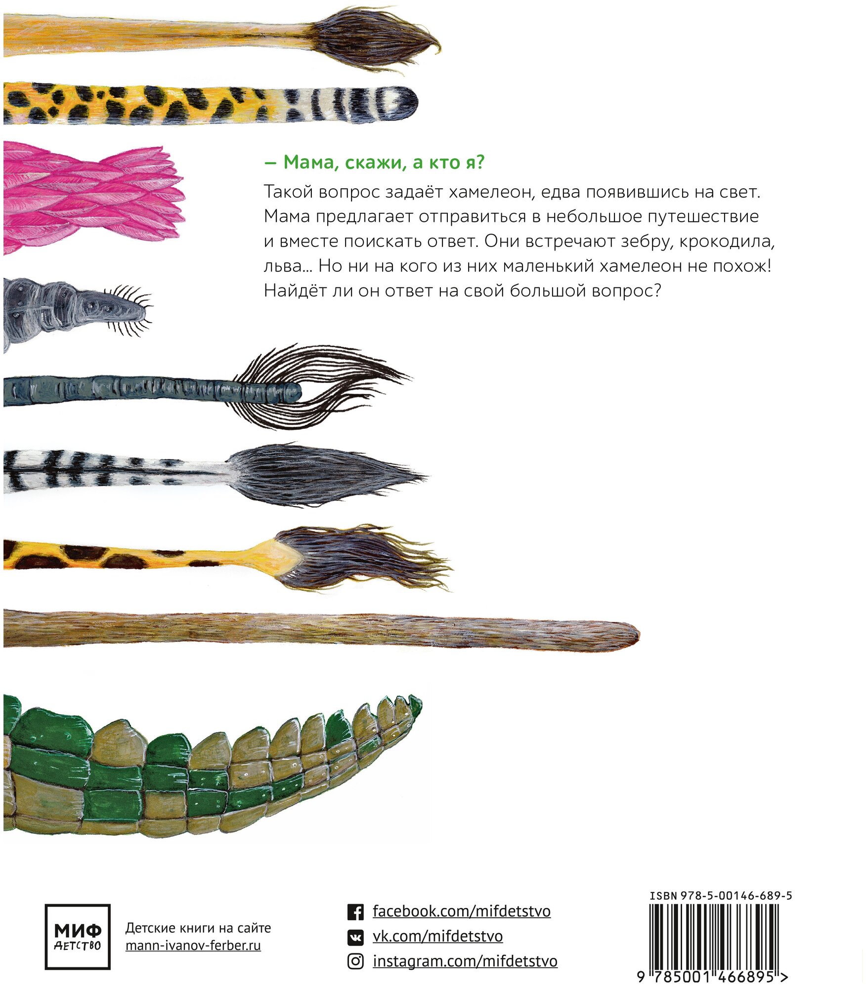 В ней малыш хамелеон только появляется на свет, с любопытством осматривается вокруг и спрашивает у мамы - кто я? А мама предлагает ему поискать ответ вместе, ведет своего малыша, показывая ему соседей по планете, объясняя разницу и сходство. Вот только самый первый вопрос пока остается открытым... Малыш хамелеон думает что он зебра или крокодил. А может быть, жираф? Но нет, мама говорит, что нет. И не гепард, и не слон, и не бегемот. И не другие встреченные животные. И даже не лев.