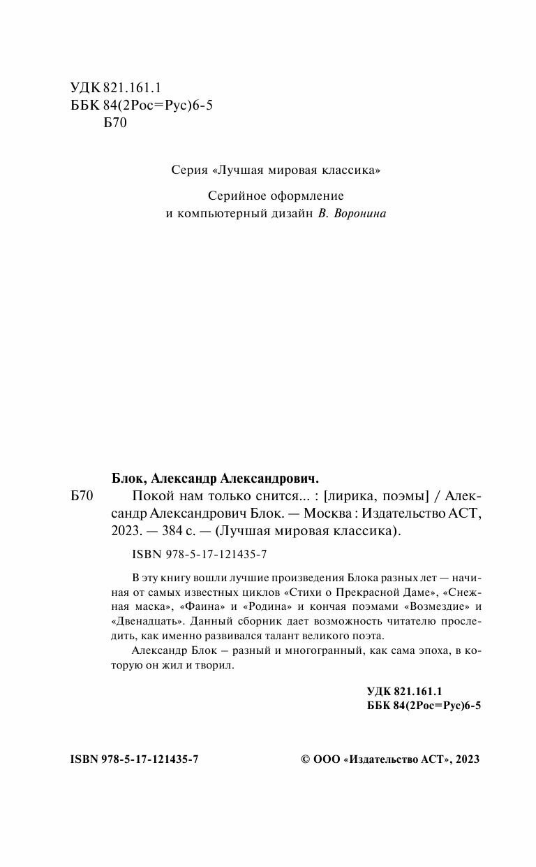 Покой нам только снится... (Блок Александр Александрович); ООО "Издательство Астрель", 2020