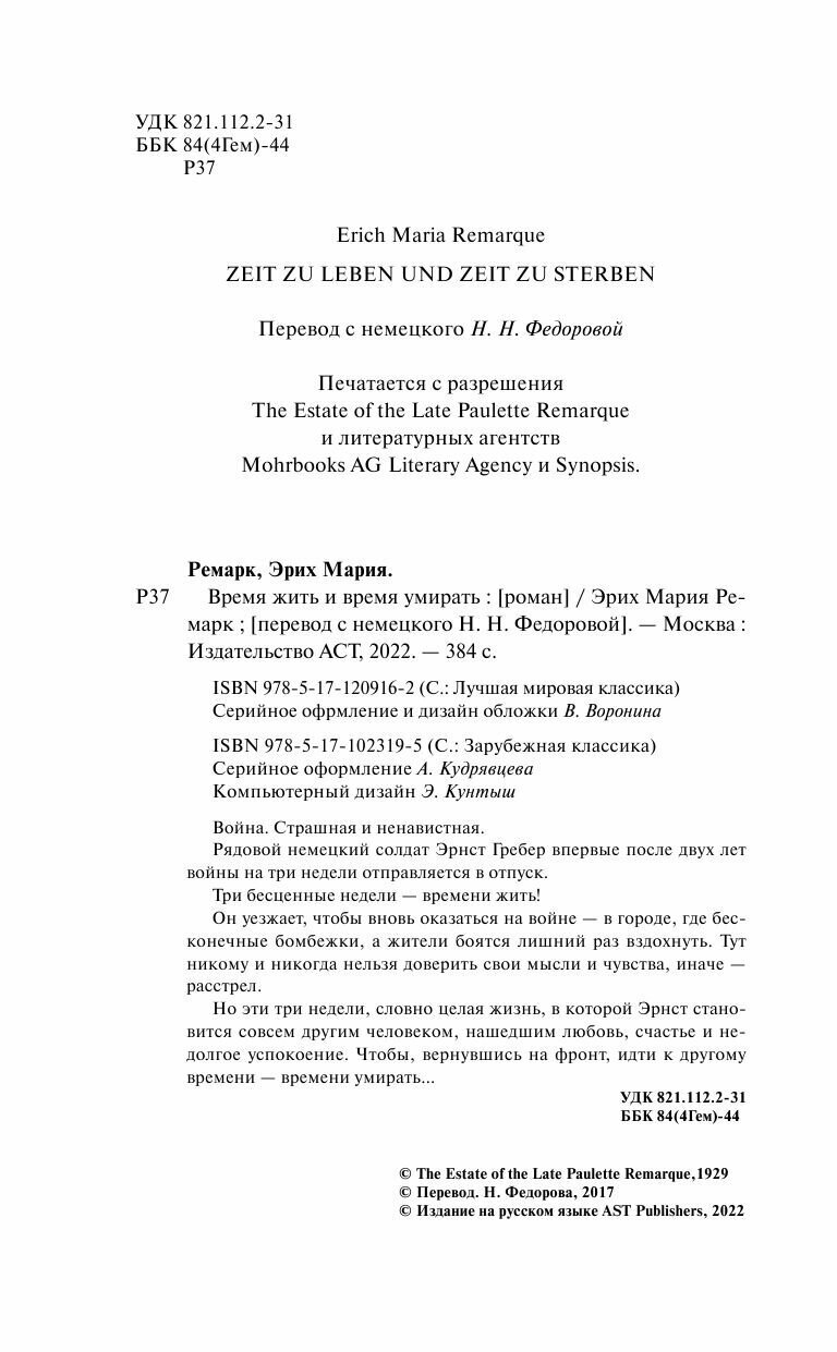 Время жить и время умирать (Ремарк Эрих Мария); ООО "Издательство Астрель", 2020
