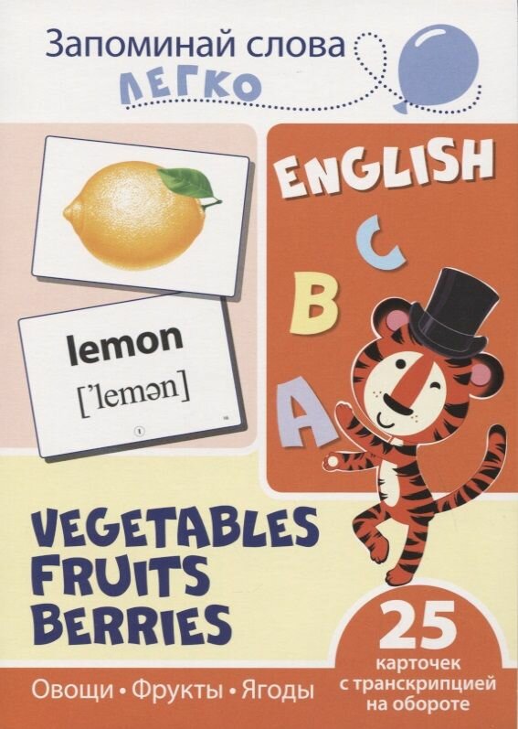 Запоминай слова легко. English. Овощи фрукты ягоды / Vegetables Fruits Berries. 25 карточек с транскрипцией на обороте (Цветкова Т.); Творческий центр Сфера Издательство, 2020