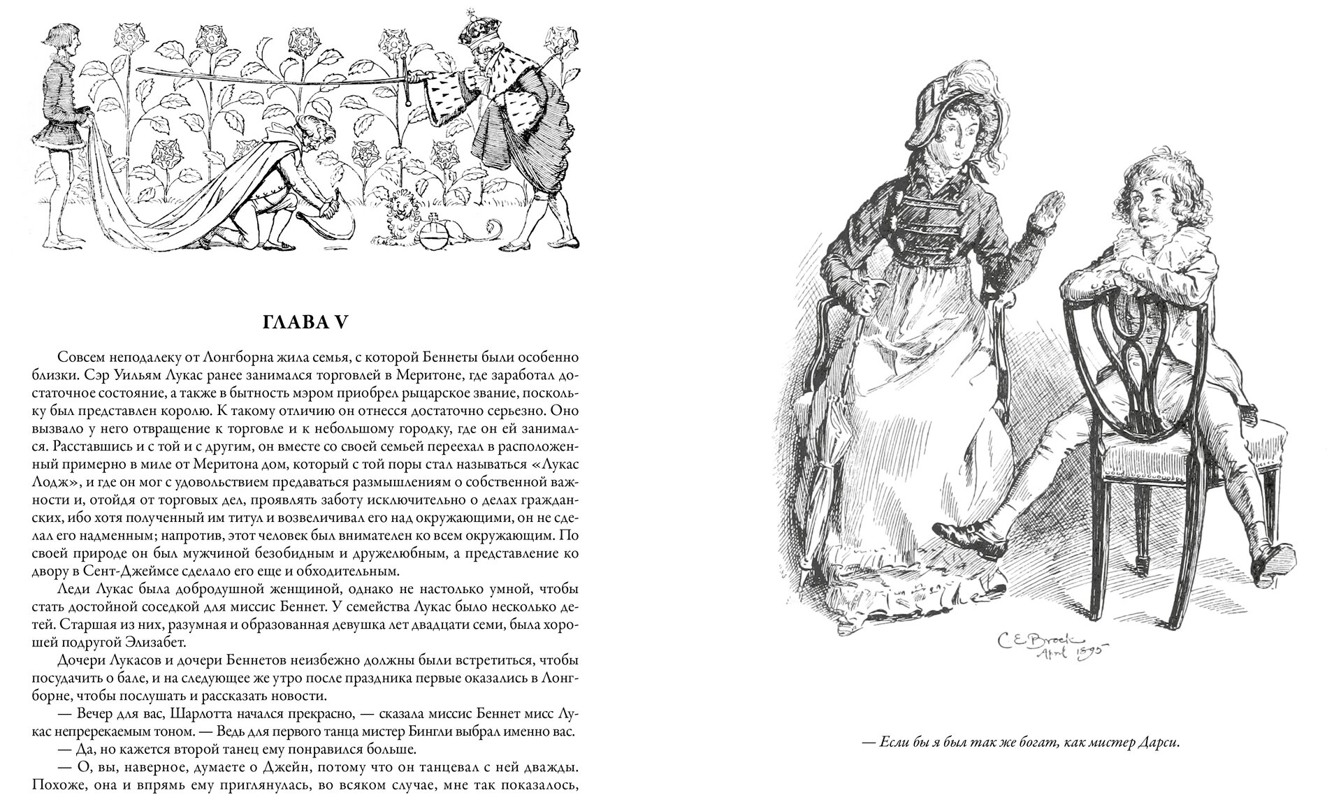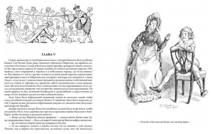 Несколько романов талантливой английской писательницы Джейн Остен, впервые опубликованных в начале XIX века, заслуженно считаются классикой британской литературы. Настоящий сборник включает три наиболее известных из них: «Гордость и предубеждение», «Разум и чувства» и «Сила здравомыслия». Эти романы навсегда покончили с оторванными от жизни сентиментальными произведениями, которыми, судя по свидетельству Пушкина, в конце XVIII века зачитывались барышни вроде Татьяны Лариной. Не случайно Остен начала свою литературную работу именно с пародий на существовавшие в ее время любовные романы. Критический взгляд на литературу, умение анализировать текст и работать с ним привил будущей писательнице ее отец, приходской священник Джордж Остен. Он, как и мать Джейн, был прекрасно образованным человеком, который сумел самостоятельно дать своим двоим дочерям прекрасное домашнее образование. Благодаря таланту тонко, реалистично, а порой и с изрядной долей юмора или сарказма описывать движения человеческой души Остен стала в английской литературе провозвестницей реализма.Наглядно представить себе персонажей романов Джейн Остен и обстановку, в которой они действуют, позволяют в этом издании прекрасные и достоверные в деталях иллюстрации двух английских художников. Первый из них, Хью Томпсон, считается одним из лучших мастеров книжной иллюстрации своего времени в Великобритании. Он родился в 1860 году и был талантливым самоучкой — не имел художественного образования и начал рисовать, работая подмастерьем в небольшой типографии. В конце XIX века Томпсон проиллюстрировал пять романов Джейн Остен; он также стал автором прекрасных рисунков к произведениям Диккенса, Теккерея и многих других английских писателей. Второй художник, чьи работы украшают это издание, родился на десять лет позже Томпсона. Чарльз Брок начал иллюстрировать книги в двадцать лет и добился на этом поприще большого успеха, творчески развивая манеру Хью Томпсона