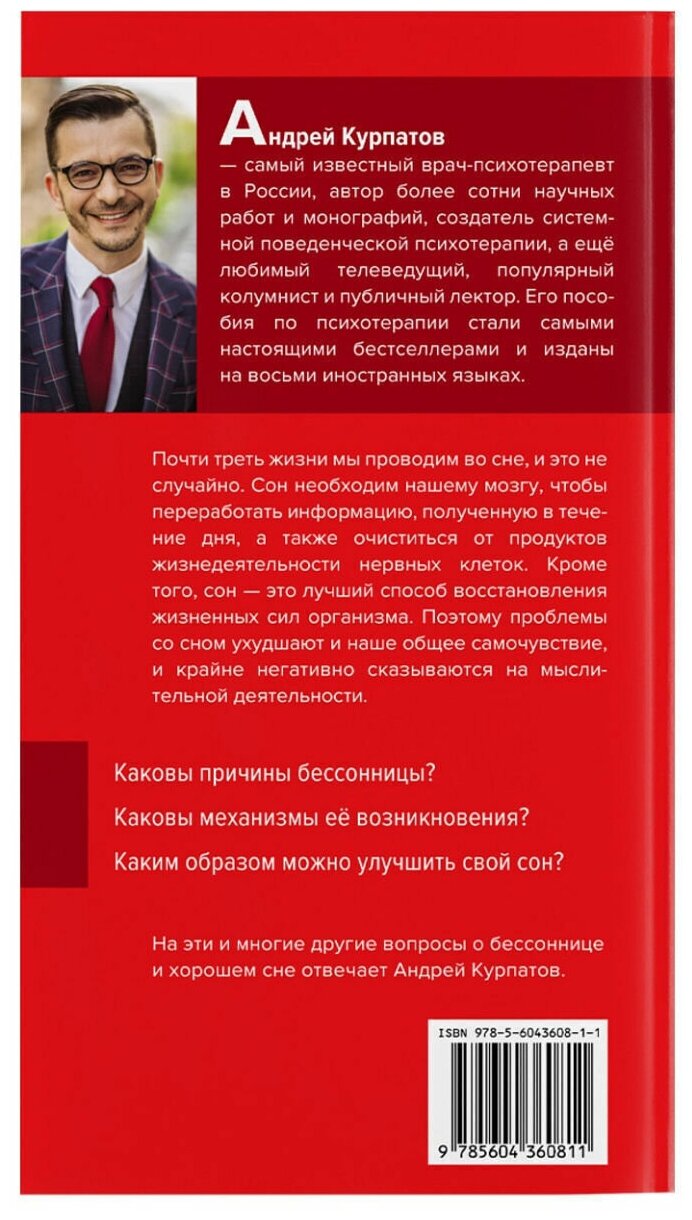 Почти треть жизни мы проводим во сне, и это не случайно. Сон необходим нашему мозгу, чтобы переработать информацию, полученную в течение дня, а также очиститься от продуктов жизнедеятельности нервных клеток. Кроме того, сон - это лучший способ восстановления жизненных сил организма. Поэтому проблемы со сном ухудшают наше и общее самочувствие и крайне негативно сказываются на нашей мыслительной деятельности. Каковы причины бессонницы? Каковы механизмы её возникновения? Каким образом можно улучшить свой сон? На эти и многие другие вопросы о бессоннице и хорошем сне отвечает Андрей Курпатов. Ранее книга выходила под названием "Средство от бессонницы. Практическое пособие" и "10 рецептов хорошего сна". 8-е издание.Пять причин купить1Узнаете все про сон и про его настоящую ценность в жизни человека.2Поймете, как появляется бессонница и как от нее избавиться.3Получите конкретные техники по улучшению сна — от дыхания до самомассажа.4Узнаете всю правду о медикаментозном лечении бессонницы и в каких случаях это оправданно.5Глава «ответы на вопросы читателей», поможет понять как действовать в ситуациях, которые случались с каждым.