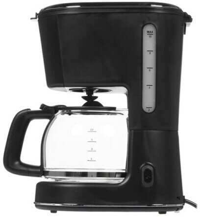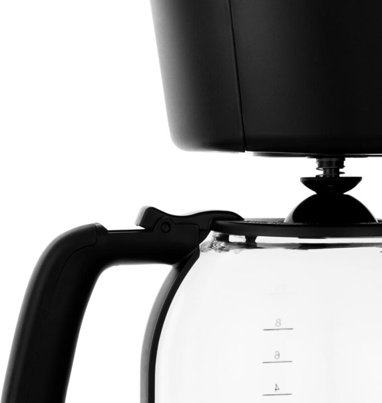 Резервуар емкостью 1.2 мл позволяет за один раз приготовить кофе на 10 чашек емкостью 120 мл. Корпус кофейника прозрачный, поэтому вы всегда можете видеть, сколько кофе еще осталось.