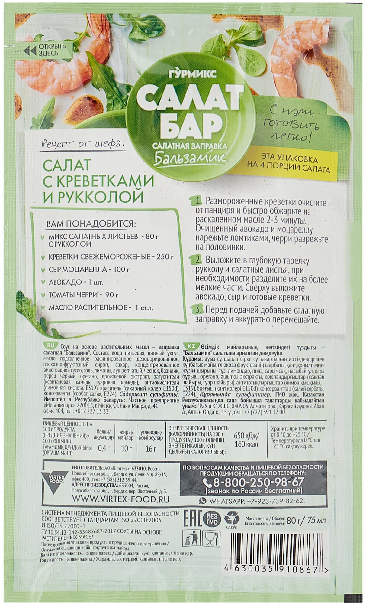 Салатная заправка Гурмикс Бальзамик 80г Виртекс