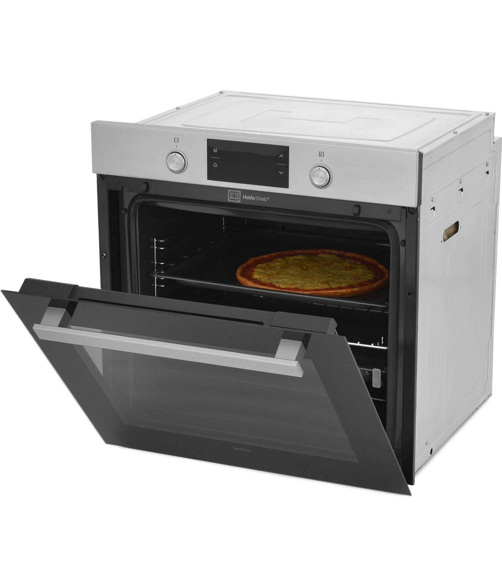 Современный духовой шкаф Jacky's с запатентованной системой HOT AIR SHILD обеспечит качественное приготовление любимых блюд и станет настоящим украшением вашей кухни! Модель разработана английскими инженерами и дизайнерами в соответствии с европейскими стандартами качества. Отличается большим объемом внутренней камеры - 78 литров, оснащена 8 режимами работы и имеет приятное управление. В комплектацию входят 3 противня (стандартный, глубокий, жаровочный лист) и хромированная решетка.К основным преимуществам духового шкафа можно отнести:1. Hot Air Shield. Первая в мире система защиты от горячего воздуха во встроенных духовых шкафах! Данная запатентованная система предотвращает возникновение ожогов и неприятных ощущений во время открытия дверцы работающей духовки. При возникновении такой ситуации создается автоматический поток холодного воздуха между панелью управления и нижней панелью духовки, благодаря чему можно беспрепятственно проверить готовность блюд.2. Телескопические направляющие обеспечивают надёжную фиксацию поддонов без риска опрокинуть их или выдвинуть случайно. Благодаря телескопическим направляющим противень или поддон можно выдвинуть на полную длину поддона, что обеспечивает удобство при различных манипуляциях с блюдами.3. Увеличенный объем внутреннего пространства до 78 л. помогает готовить нескольких блюд одновременно, что особенно актуально для больших семей и любителей кулинарных изысков.4. Каталитическая задняя панель. Благодаря задней каталитической пластине, очищение внутренней поверхности шкафа, происходит без затруднений. Во время приготовления пищи, расщепляется жир до углерода и воды. Для очищения духовки достаточно просто протереть её влажной тряпкой.