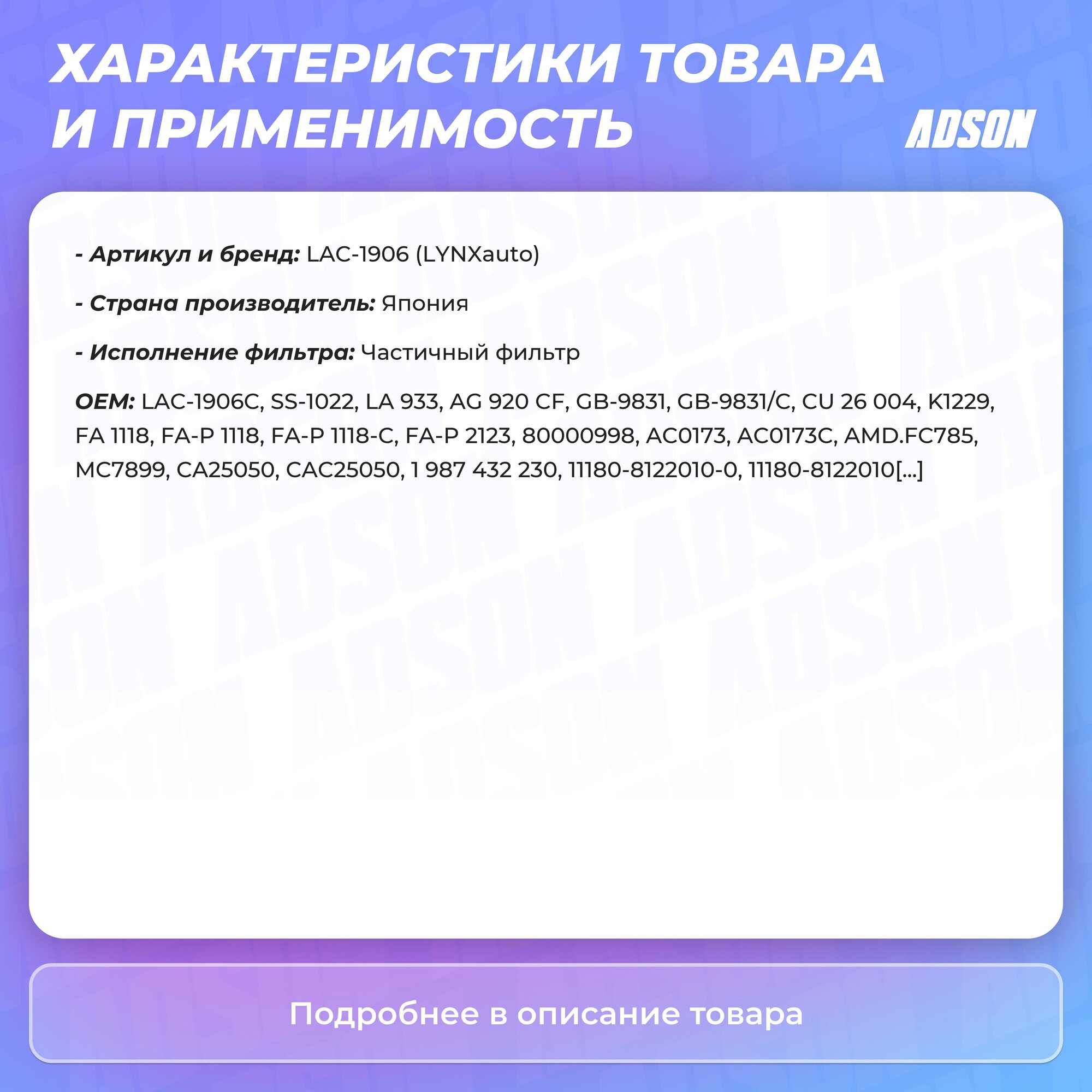 Сервис сравнения цен СкидкаГИД предлагает сравнить цены на товар «Салонный фильтр LYNXauto LAC-1906»