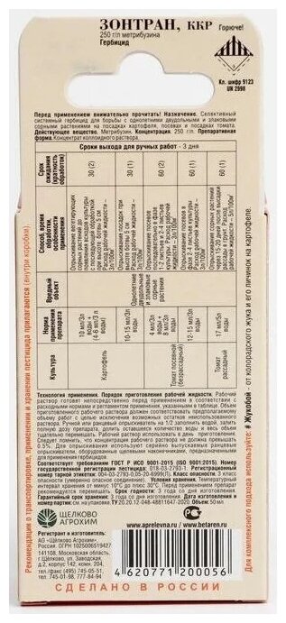 Выбирая Зонтран, вы получаете надежную защиту ваших культур от сорняков, что способствует их здоровому росту и повышению урожайности. Сделайте шаг к более продуктивному садоводству с гербицидом Зонтран!