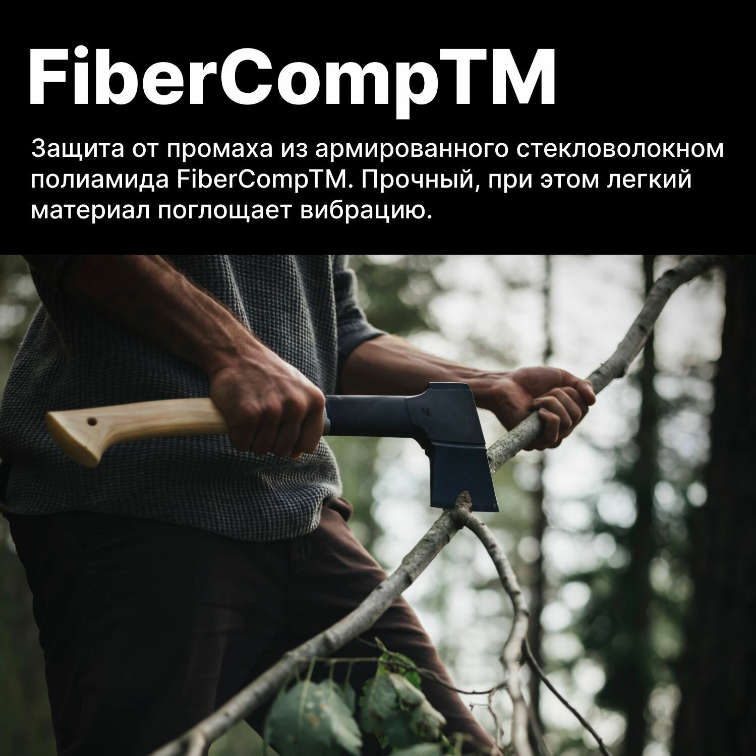 - Крючкообразное топорище из древесины гикори устойчиво к износу, комфортно лежит в руке, не выскальзывает.