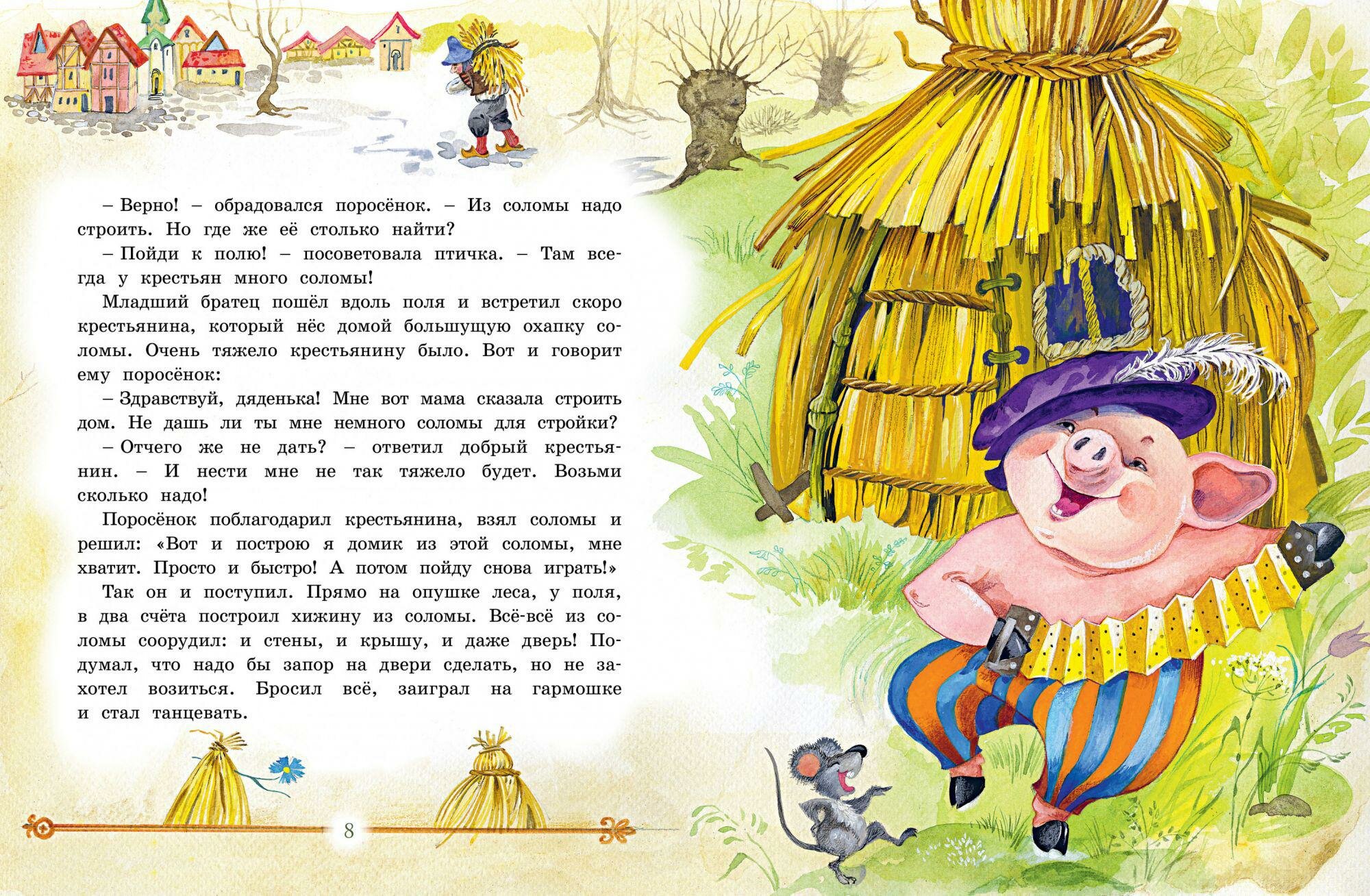 Книга превзошла мои ожидания! Давно не видел и не читал такие сказки, где в конце присутствует адекватное и четкое завершение истории, а главное герои делают вывод. Прочитали несколько сказок и мне очень нравится, что они учат ребенка хорошему. К примеру: " Слушаться родителей и не трогать чужие вещи без спроса", "Не хвастайся, а то тебя съедят", "Все нужно делать на совесть, а не от руки вон" и т.д. Жестокости в этих сказках нет. Особо порадовала сказка о трех поросятах! Она, во-первых, полная, а, во-вторых, я сам был в изумлении на сколько она хорошо продумана - там рассказывается даже, почему поросята выбрали определенные материалы для постройки своих домиков. Книга-сокровище, очень рекомендую!