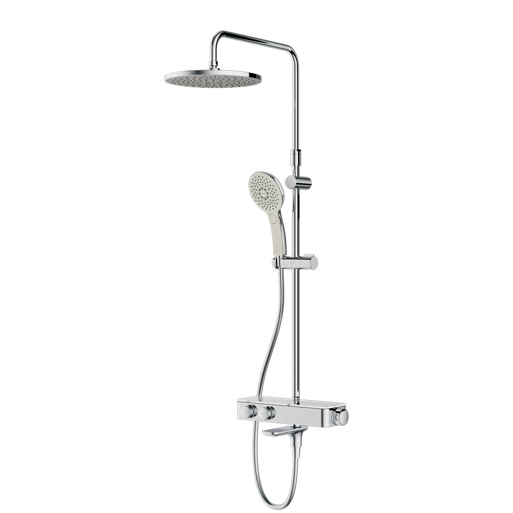 Душевая система Inspire V2.0 – это новый уровень удовольствия от принятия душа благодаря возможности индивидуальной настройки. Вы можете управлять верхним и ручным душами с помощью удобных контроллеров, расположенных на передней панели. Включайте воду легким нажатием, меняйте напор плавным поворотом ручки – и наслаждайтесь идеальным душем снова и снова, ведь система запоминает выбранные вами параметры. Продукт оснащен термостатическим смесителем для поддержания неизменной температуры воды. Верхняя часть смесителя выполнена из глянцевого стекла и является интегрированной полочкой для нужных мелочей при приёме душа. Удобный поворотный излив. Удивительно тактильный ручной душ за счёт материала поверхности soft touch.