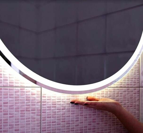 Зеркальное полотно с подсветкой, на взмах руки, навески для крепления к стене. Светодиодная подсветка, трансформатор для светодиодных светильников, электрический провод 0.5 м для подключения к электросети 220В.