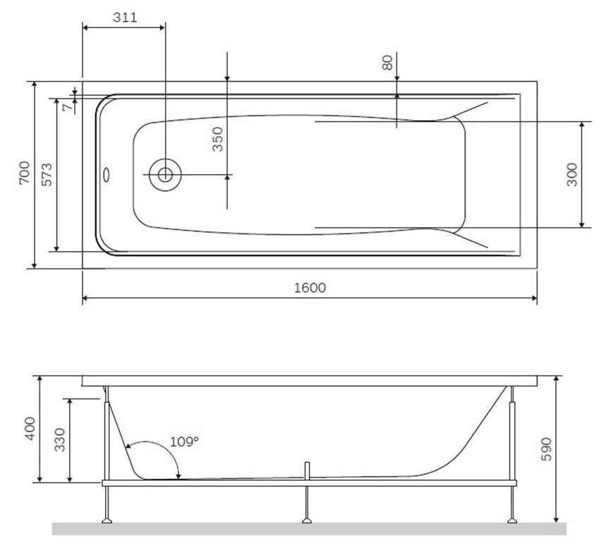 Акриловая ванна AM PM Gem 160х70 без гидромассажа