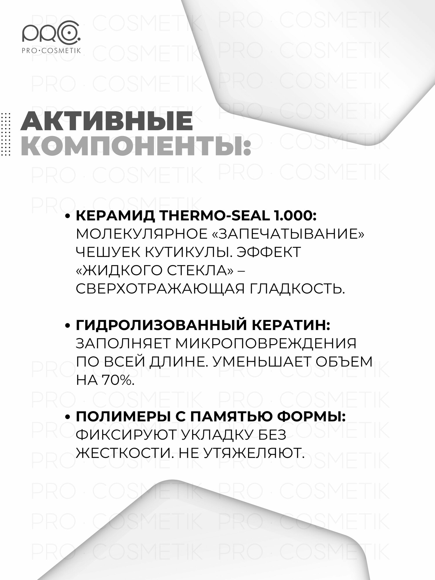 - разглаживающий полимер – создает гидрофобную пленку, которая мгновенно преображает поверхность волоса, укрощая завиток и защищая от влажности