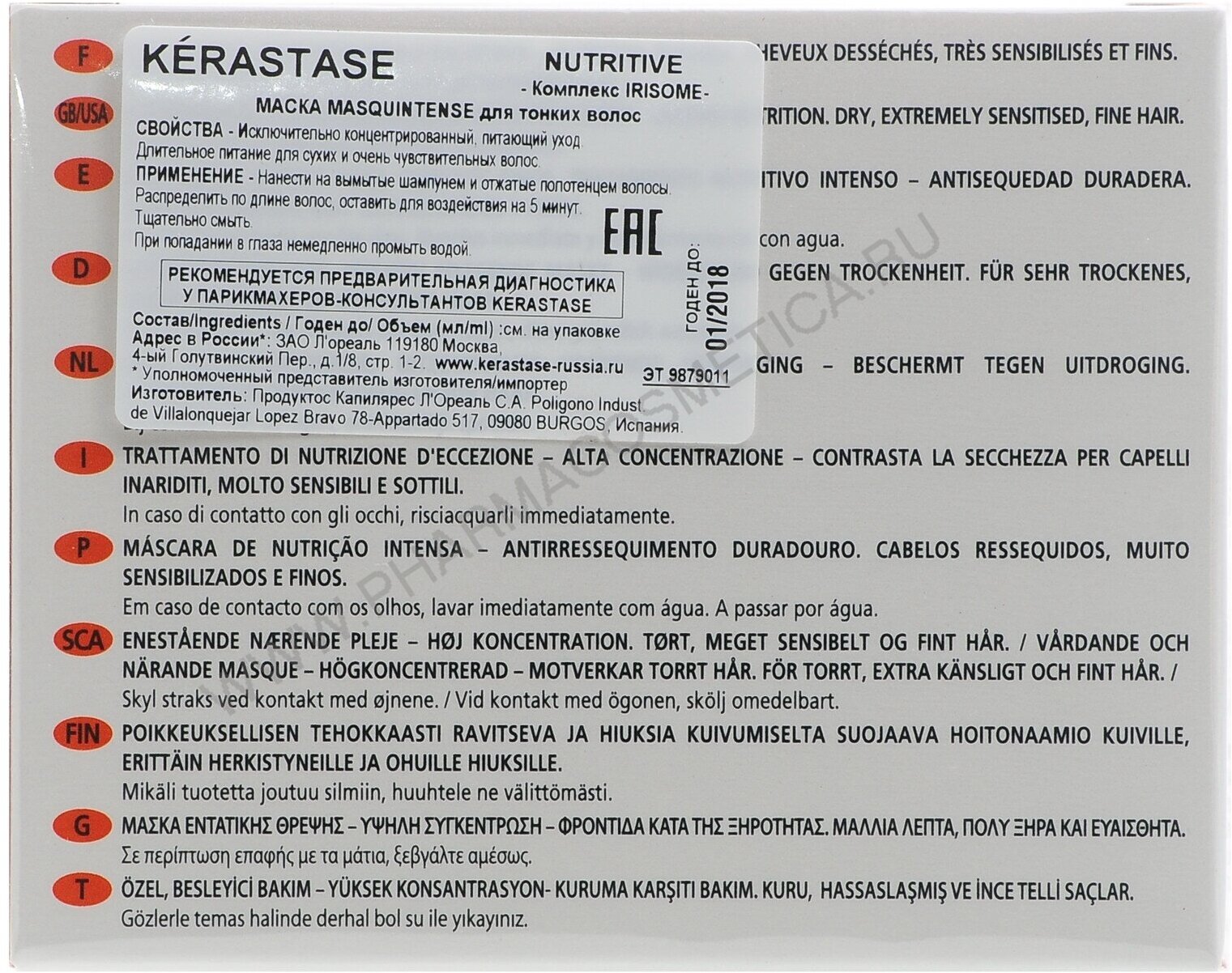 Питательная маска Nutritive Masquintense – это концентрированный питающий уход за сухими и чувствительными волосами. Интенсивно увлажняющее средство способно за несколько применений превратить тусклые, слабые волосы в шелковистые, эластичные и блестящие. Также средство выравнивает верхний слой каждого волоса, делая их гладкими и упругими. Богатая, роскошная текстура обволакивает волокно волоса , до самых кончиков.