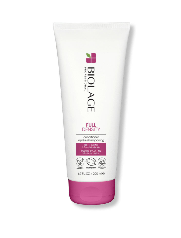 Кондиционер Biolage Fulldensity ухаживает за волосами без утяжеления, питает и укрепляет их, делает более объёмными и блестящими. В результате применения повышается эластичность, сокращается выпадение и ломкость - волосы становятся плотнее и гуще.