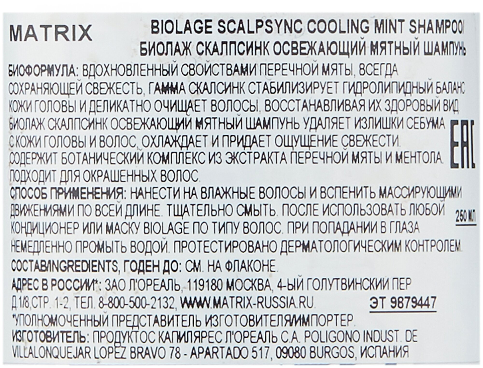 Освежающий шампунь Biolage Scalpsync глубоко очищает волосы и удаляет излишки себума с кожи головы благодаря антисептическим и успокаивающим свойствами перечной мяты. Средство охлаждает и дарит ощущение свежести и чистоты, возвращая волосам здоровый и ухоженный вид. Обладает легким мятным ароматом. Подходит для всех типов волос, склонных к жирности, в том числе окрашенным. Протестировано под дерматологическим контролем.