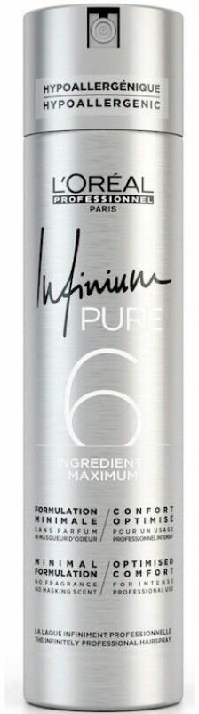 Команда L`Oréal Professionnel в очередной раз сделала невозможное, создав лак без запаха Infinium Pure, который имеет в своем составе всего 6 гипоаллергенных ингредиентов, не вызывающих чувства дискомфорта при работе.