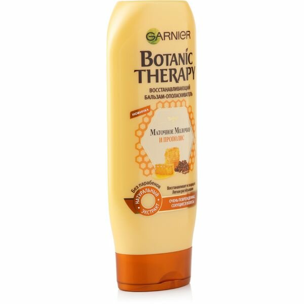 В основе бальзама уникальная рецептура от экспертов GARNIER Botanic для быстрого восстановления сильно поврежденных волос - это Маточное Молочко и Прополис. Маточное молочко призвано бороться и сокращать секущиеся кончики за счет питания и восстановления волос от корней. Прополис улучшает внешний вид поврежденных волос, разглаживает, придает силы и энергию, возвращает им мягкость и блеск. Результат заметен сразу после применения - волосы легко расчесываются, послушно укладываются, выглядят здоровыми и блестящими.