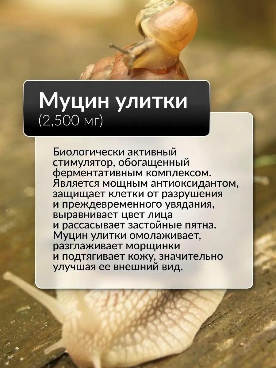 | Активный ингредиент | фермент улиточной слизи, муцин, экстракт магнолии, экстракт лилии, экстракт лаванды, экстракт алоэ |