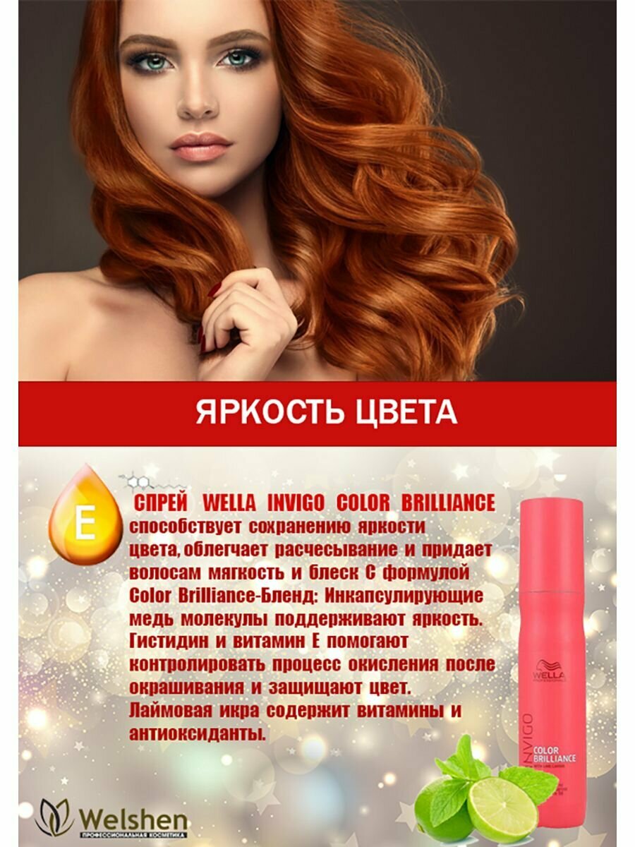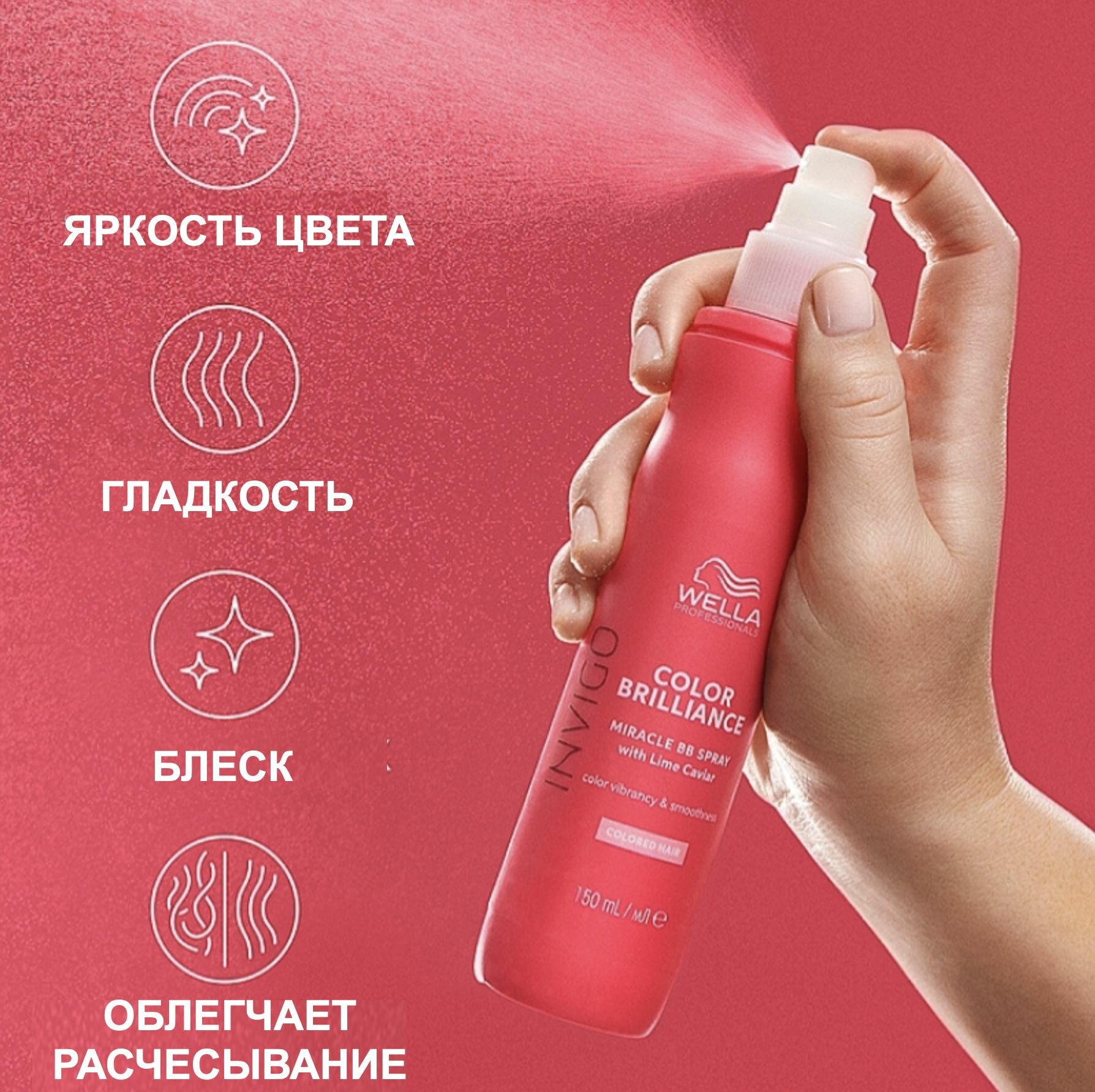 Несмываемый бьюти-спрей Invigo Color Brilliance. Роскошный ВВ-спрей способствует сохранению яркости цвета, облегчает расчесывание и придает волосам мягкость и блеск.