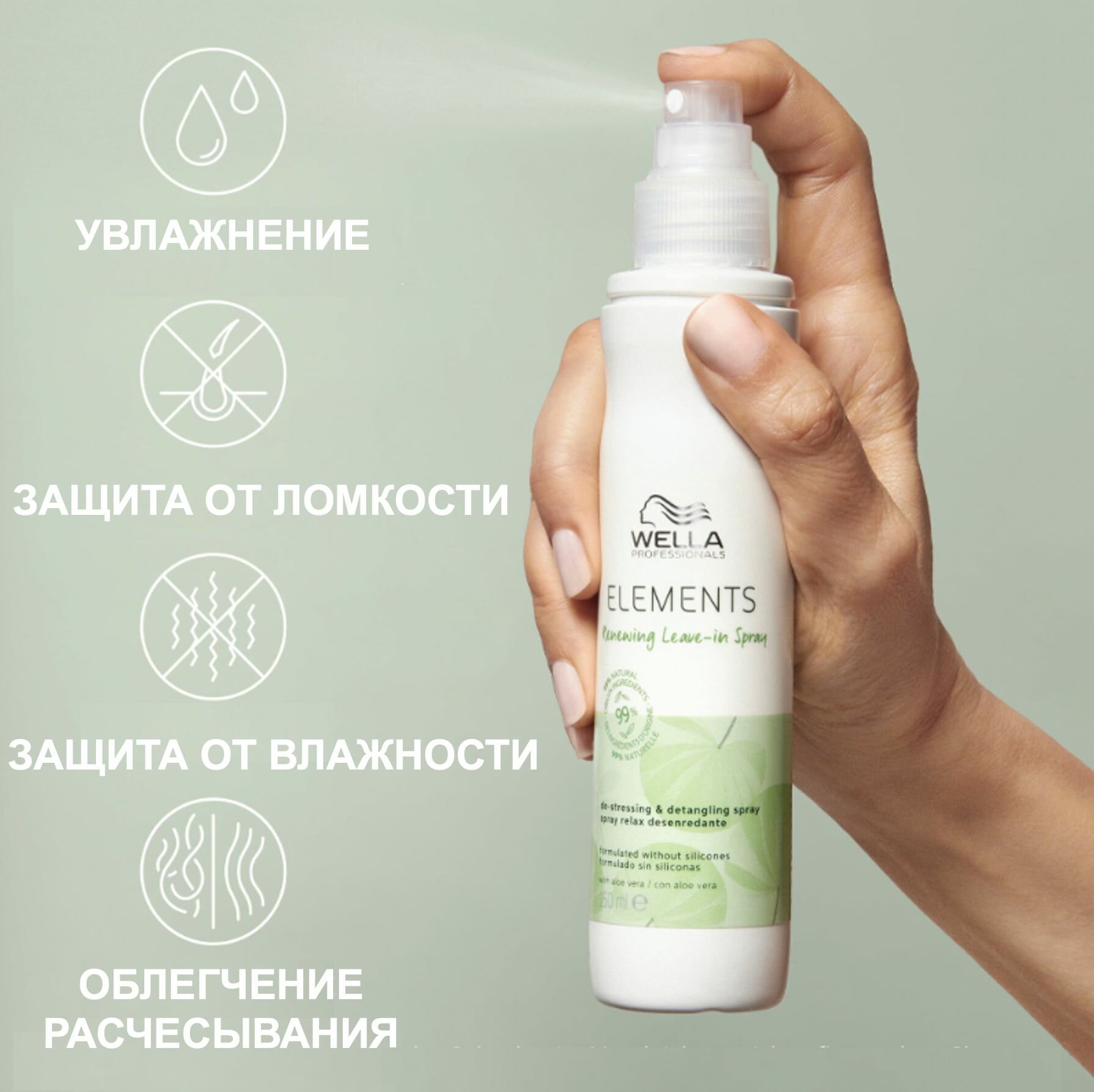 Защита волос от ежедневных воздействий с помощью несмываемого увлажняющего спрея Wella Professionals Elements. Несмываемый увлажняющий спрей Elements от Wella Professionals не содержит парабенов. Ухаживает за волосами и защищает их от повседневного стресса, а также обеспечивает легкую фиксацию.