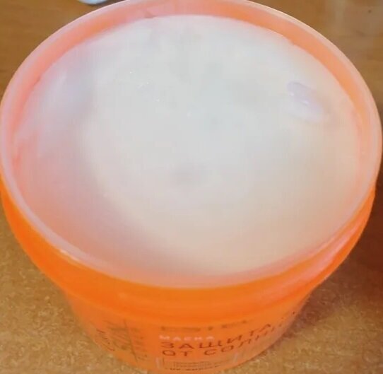 Мои волосы обесцвечены, длинные, пористые, корни склонны к жирности, кончики сухие. Использовала половину маски в городе, а оставшуюся половину брала на море, где никак не защищала волосы и не убирала их во время купания. Маска хорошо себя показала, волосы были в точно таком же состоянии, как и до поездки на море. Консистенция не жидкая, но и не слишком густая. Расход средний. Запах довольно странный, но не раздражал и не оставался на волосах после мытья. Маска хорошо смягчала волосы, они были увлажнены, но идеальных волос не делает, пушистость убирает не до конца. Данная маска хороший бюджетный вариант для защиты волос от солнца