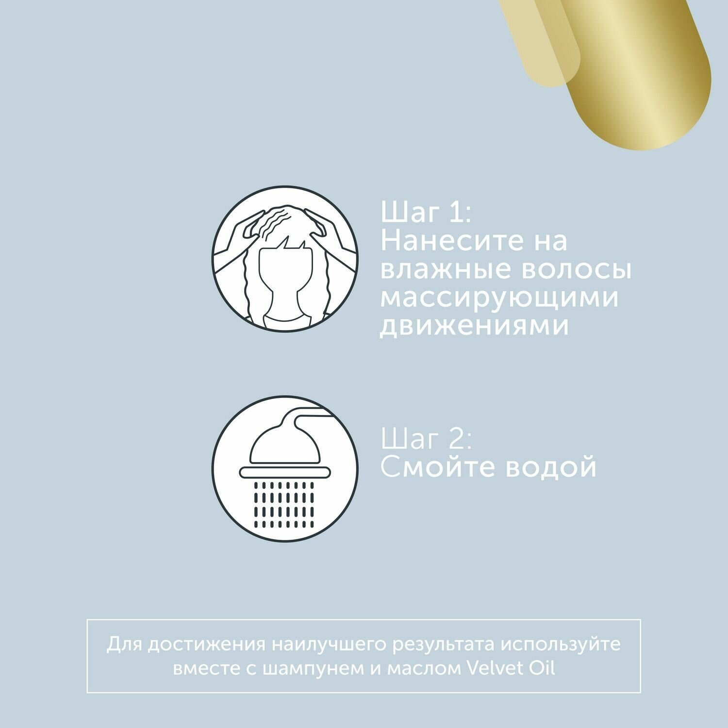 Способ применения: Нанести на влажные волосы массирующими движениями. Оставить на 1-3 минуты для воздействия. Смыть водой.
