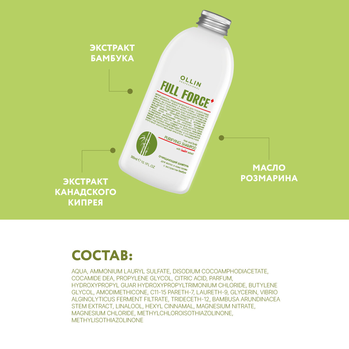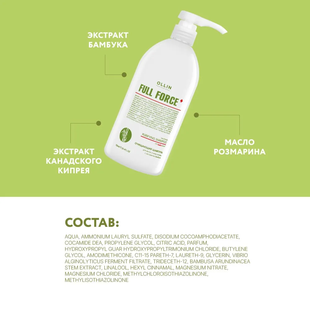 Ollin Professional Очищающий шампунь для волос и кожи головы с экстрактом бамбука 300 мл (Ollin Professional ) (725614)