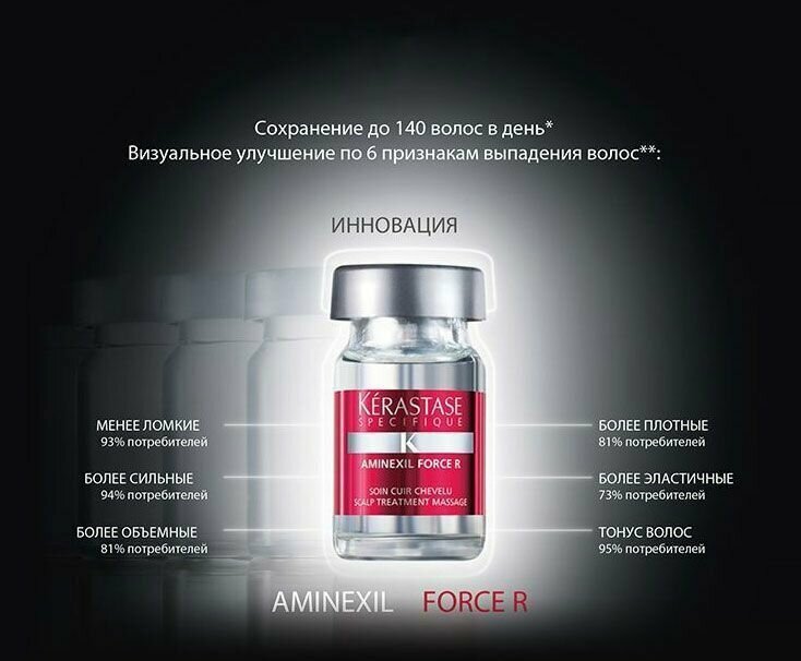 Интенсивный курс от выпадения Aminexil Force R от Kerastase разработан специально для борьбы с выпадением и истончением волос. Усиленный состав средства вернёт вашим волосам объем, блеск и эластичность. Восстанавливается материя волос, появляется гибкость и подвижность. Локоны становятся мягкими и приятными на при прикосновении. Волосяная структура укрепляются по всей длине, становится менее ломкой. Возвращается лёгкость и комфорт при расчёсывании и укладке.