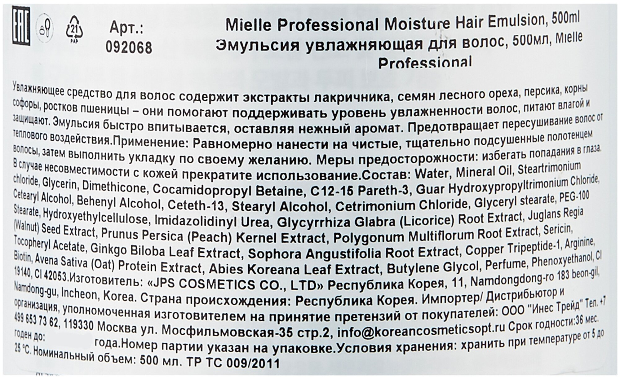 | Коллекция | JPS Mielle Professional Moisture Hair Emulsion |