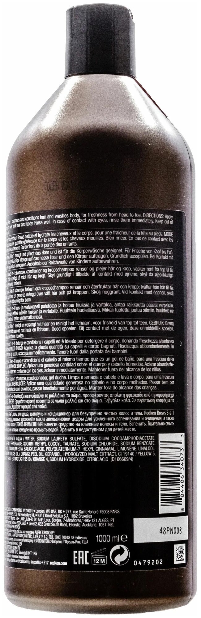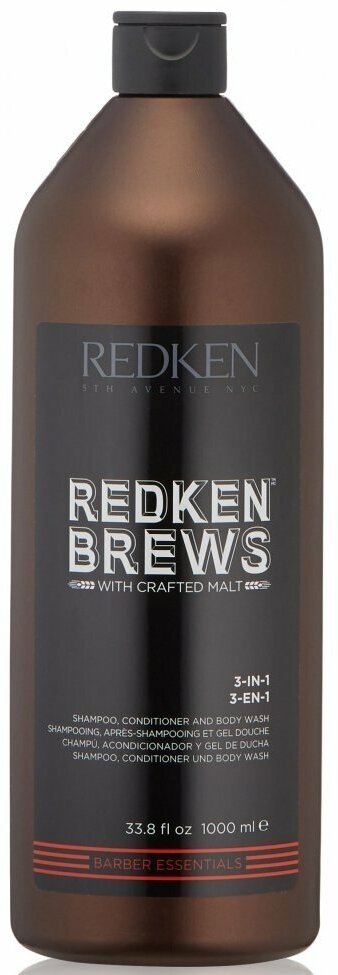 Питательный уход 3 в 1 от Redken Brews: гель для душа + шампунь + кондиционер для волос -- идеальное решение для тех, кто любит оптимизировать место на полках в душе. Универсальное решение Redken Brews 3-In-1 Shampoo, Conditioner & Body Wash для очищения и смягчения волос и кожи в одном флаконе - мечта любого мужчины: занимает мало места и приносит максимум эффективности.