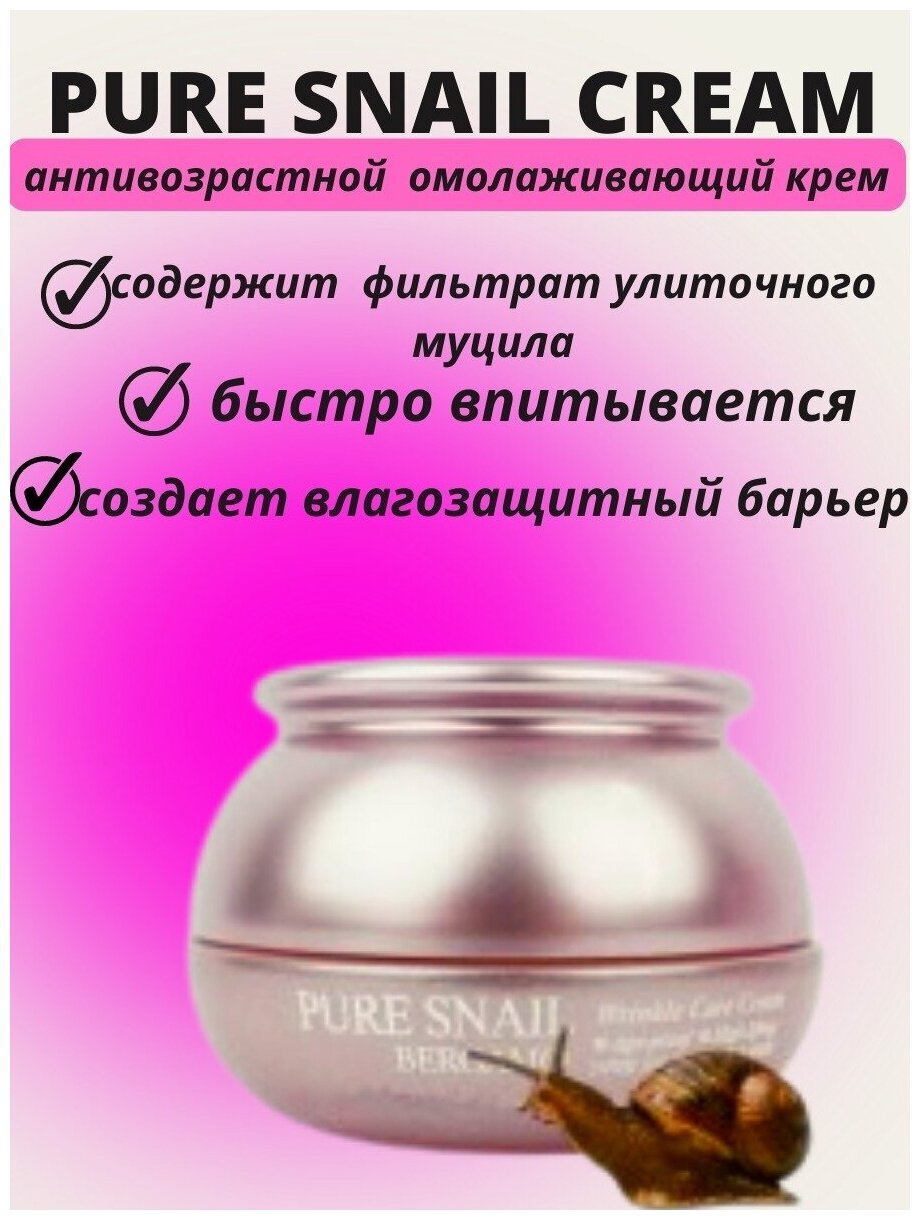 На сегодняшний день товар «Bergamo Крем для лица с муцином улитки антивозрастной 50 г (Bergamo ) (80018209)» можно купить с кешбеком в 1 магазине: Яндекс.Маркет