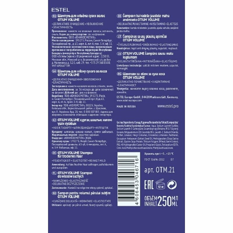 Сервис сравнения цен СкидкаГИД предлагает сравнить цены на товар «Estel Шампунь для объема сухих волос 250 мл (Estel ) (OTM.21)»