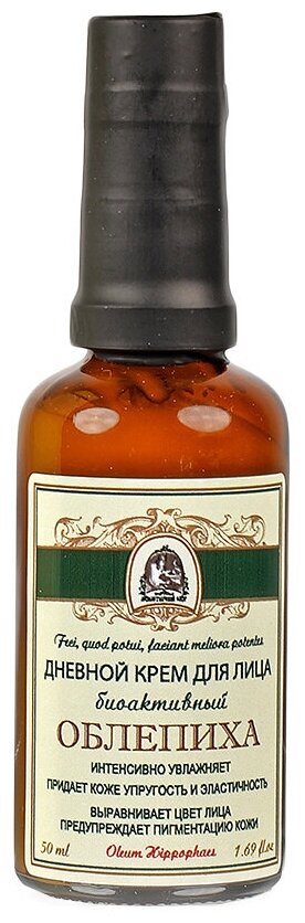 Что ожидает женщина от дневного крема? Увлажнения и защиты. И, конечно, красоты. Все это может дать вам дневной биоактивный крем «Облепиха». Каждый компонент крема «Облепиха» нацелен на решение этой задачи: • масло из ягод облепихи холодного отжима питает кожу, улучшает цвета лица, предотвращает появление первых морщинок; • масло календулы превосходно смягчает кожу, повышает ее устойчивость к ультрафиолету и другим неблагоприятным факторам внешней среды: • экстракт цветков маргаритки уменьшает пигментацию кожи и делает возрастные пигментные пятна менее заметными. Он снижает выработку пептида эндотелина-1, тем самым сокращая биосинтез меланина под действием УФ-излучения, и уменьшает активность фермента тирозиназы, который ответственен за синтез пигментов в коже. • масла лесного ореха выравнивает текстуру кожи, подтягивает контур лица, разглаживает мелкие морщинки; • экстракт имбиря мягко, без жжения и других неприятных ощущений, разогревает кожу, стимулирует кровообращение, ускоряет обмен веществ, тем самым резко повышая эффективность действия крема в целом. Он же сужает поры, улучшает цвета лица и повышает тургор кожи. Крем имеет нежный спокойный несильный цветочный аромат и легкую текстуру. Он быстро впитывается, на многие часы увлажняя кожу. Оказывает легкое матирующее действие. Является хорошей основой под макияж.
