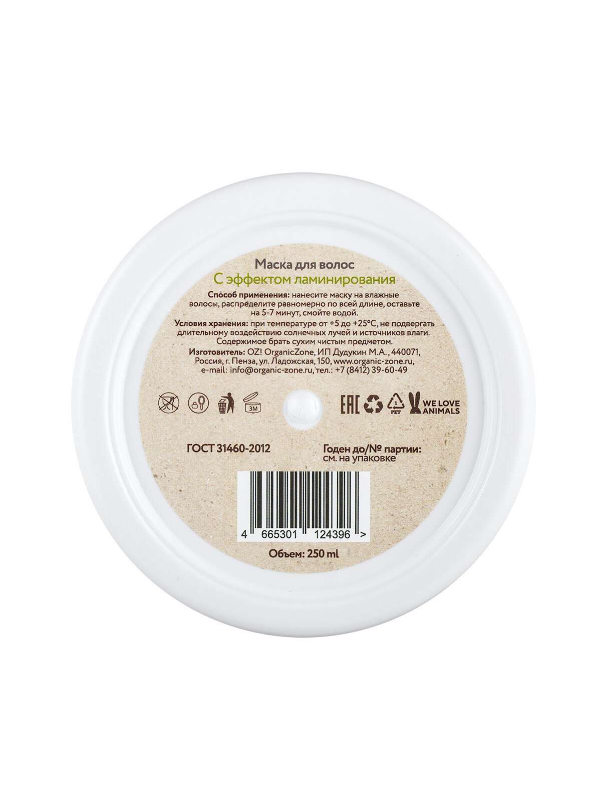 OZ! OrganicZone Маска для блеска и гладкости волос "С эффектом ламинирования" 250 мл (OZ! OrganicZone ) (ORZN0131-0250)